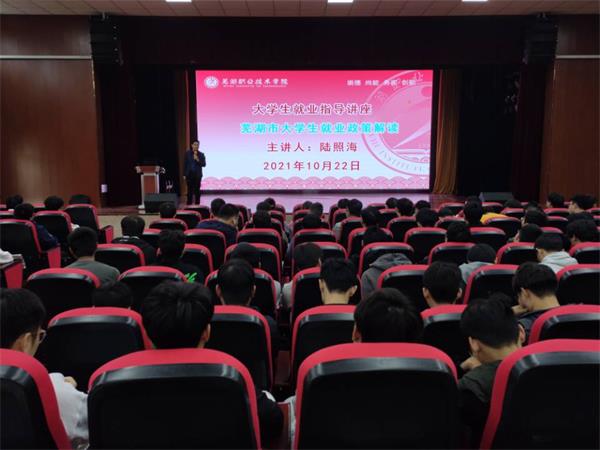 为帮助学院学生了解芜湖市情及就业创业扶持政策,10月22日下午,学院在北校区学生活动大礼堂举办芜湖市情及就业政策解读专题讲座,本次讲座由芜湖市人力资源和社会保障局党委委员陆照海担任主讲,学校招就处负责人周基燕、汽车与航空学院党总支副书记惠乐参与,学院300余名2022届毕业生聆听本次讲座。