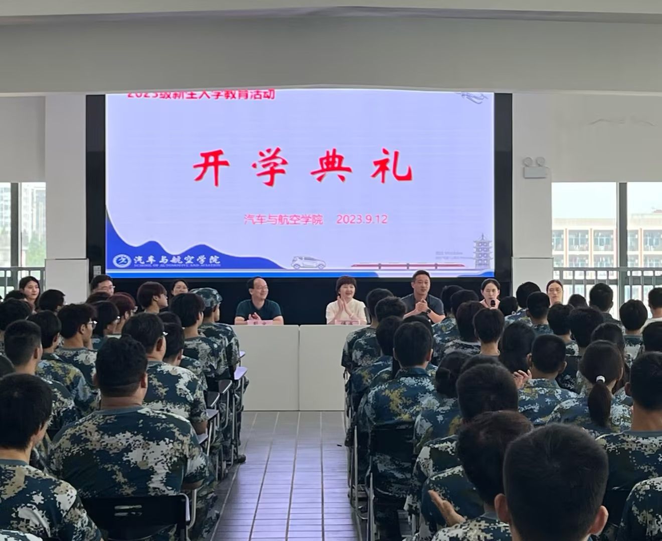 天朗气清,金桂飘香。9月12日,汽车与航空学院2023级新生开学典礼在汽航楼502按照专业分两场举行。学院党政主要负责人、教研室主任、教师代表、新生辅导员、2023级全体新生出席典礼,典礼由学工科长王茜主持。