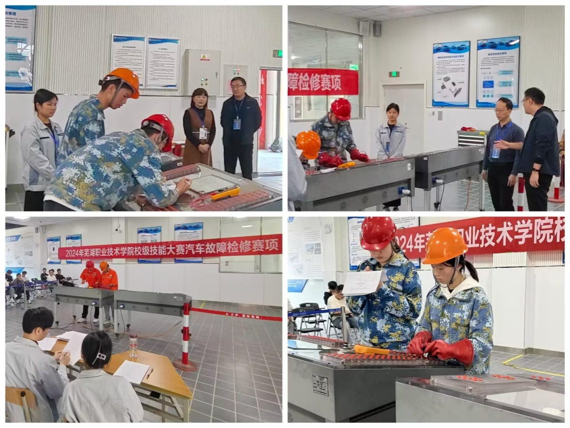10月23日,汽车与航空学院在新能源汽车实训室举行2024年芜湖职业技术学院“汽车故障检修”赛项技能大赛,汽车与航空学院17支参赛队34名参赛选手同台竞技。