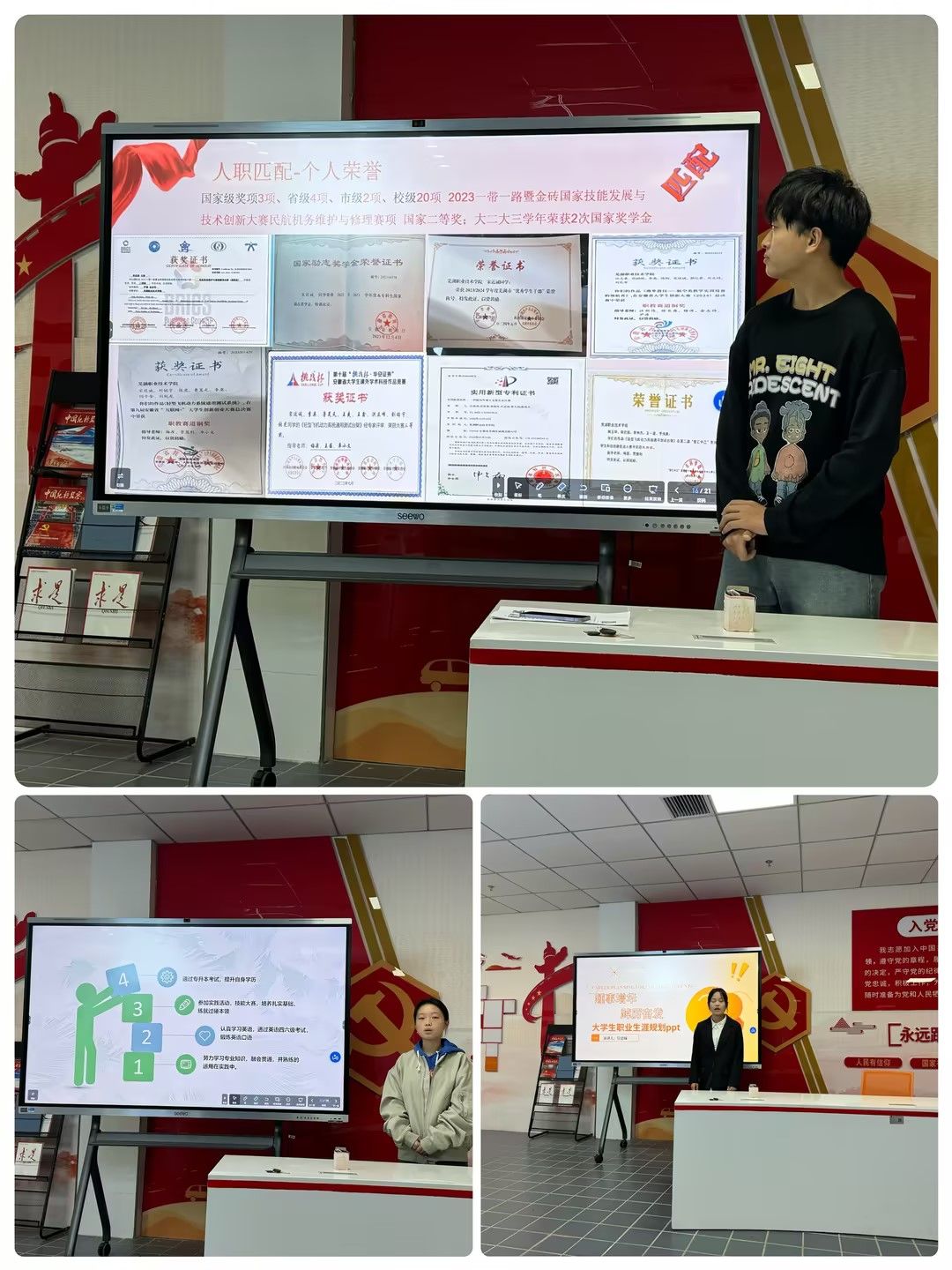 为全面普及大学生职业规划知识,传播生涯成长理念,引导学生树立正确的就业观、成才观、价值观,做好校赛备赛工作,2024年11月6日上午9点,汽车与航空学院在党员活动室举办“环抱未来,成就梦想”职业生涯规划院级决赛。