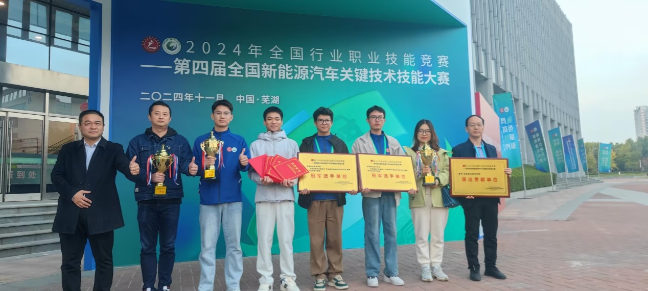 11月21日,由中国机械工业联合会、人力资源和社会保障部、全国总工会等主办的2024年全国行业职业技能竞赛——第四届全国新能源汽车关键技术技能大赛在安徽芜湖落下帷幕。我校汽车与航空学院师生4支参赛队与来自30个省(市、区)及新疆生产建设兵团代表队共1030名企业、院校选手同台竞技。贾慧利、王学成老师和张程、曹立群两名同学分获得“新能源汽车维修工(节能减排与氢动力)”赛项两个一等奖的第一名;刘长见、魏祥同学获得“汽车零部件装调工(汽车电动化技术)”赛项一等奖;徐长康、汪新伟老师获得“汽车整车装调工(新能源汽车轻量化技术)”赛项二等奖。学校被授予职工组、学生组两项全国冠军选手单位和突出贡献单位荣誉称号,获奖等次及数量居全国各参赛单位前列。