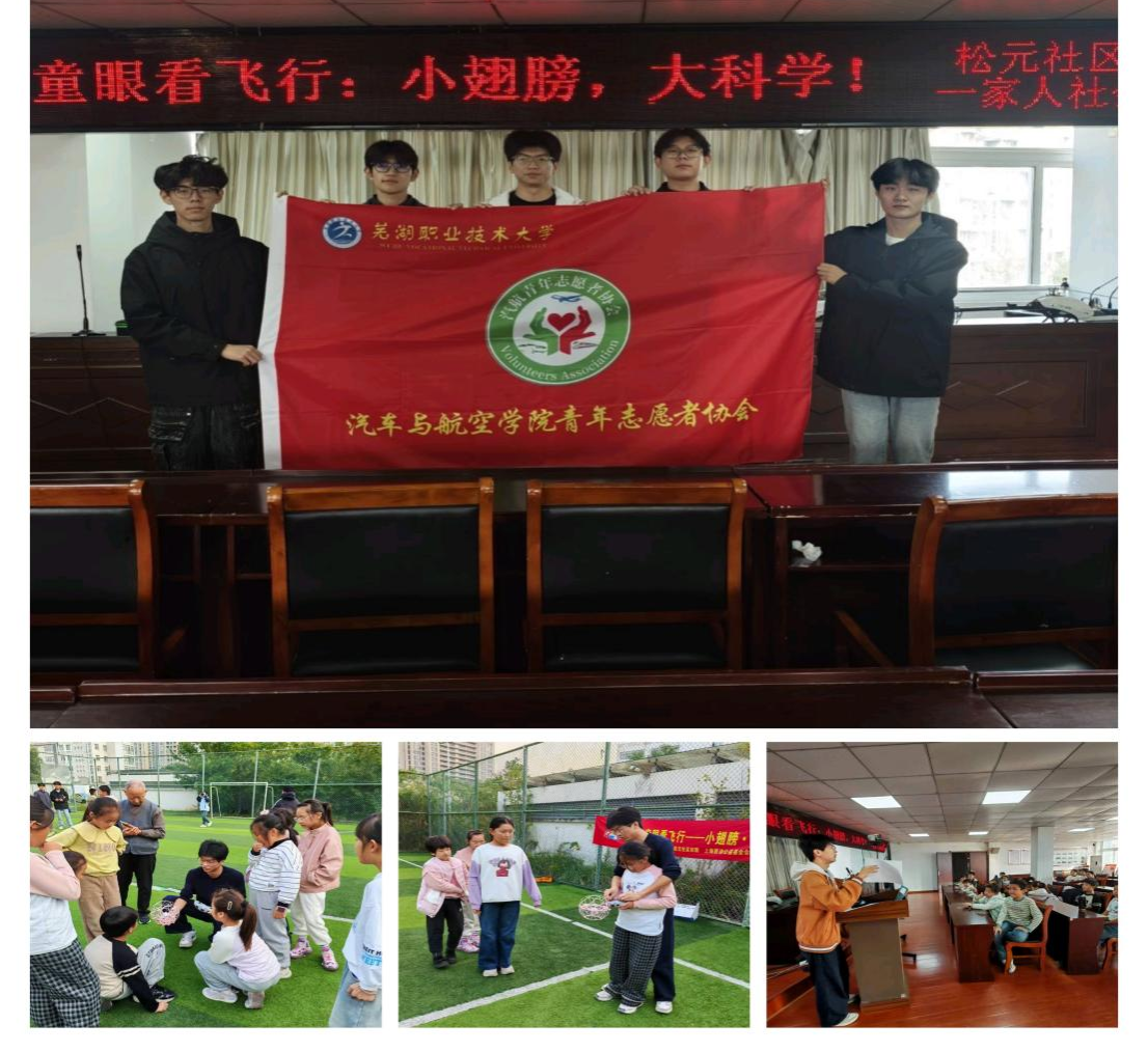 2025 年 10 月 25 日,芜湖职业技术大学汽车与航空学院的青年志愿者们走进芜湖市弋江区松元社区,以 “童眼看飞行:小翅膀,大科学” 为主题,开展了一场别开生面的无人机科普志愿活动。这场活动不仅让社区儿童近距离触摸到航空科技的脉搏,更在他们心中点燃了探索蓝天的梦想火种,是青年学子践行科普责任、落实党的创新理论的生动实践。