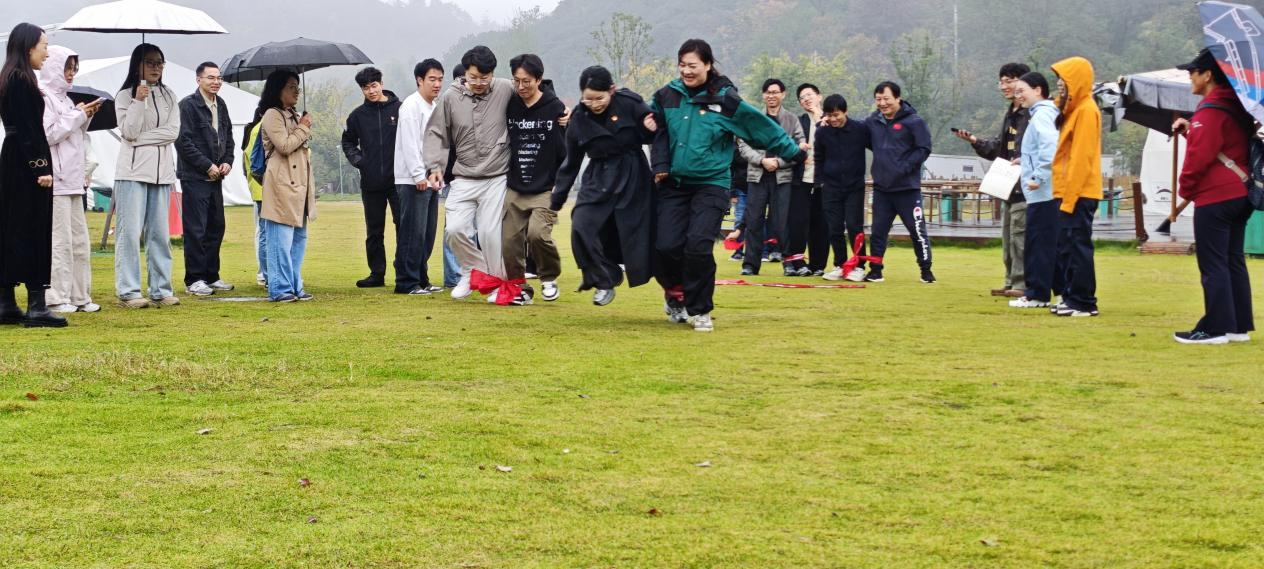 随后,队伍前往芜湖途居马仁山露营地。金秋时节,营地内草木葱郁、空气清新,原生态的自然景致让教职工们在红色教育的思想激荡后,得以放松身心。趣味团建环节,工会紧扣“凝心聚力,快乐同行”主题,策划了“秋日果实接力赛”“两人三足”“我是神投手”等互动项目。活动现场,教职工们有序分组、默契配合,充分展现了团结协作、积极向上的精神风貌,现场氛围热烈而有序。