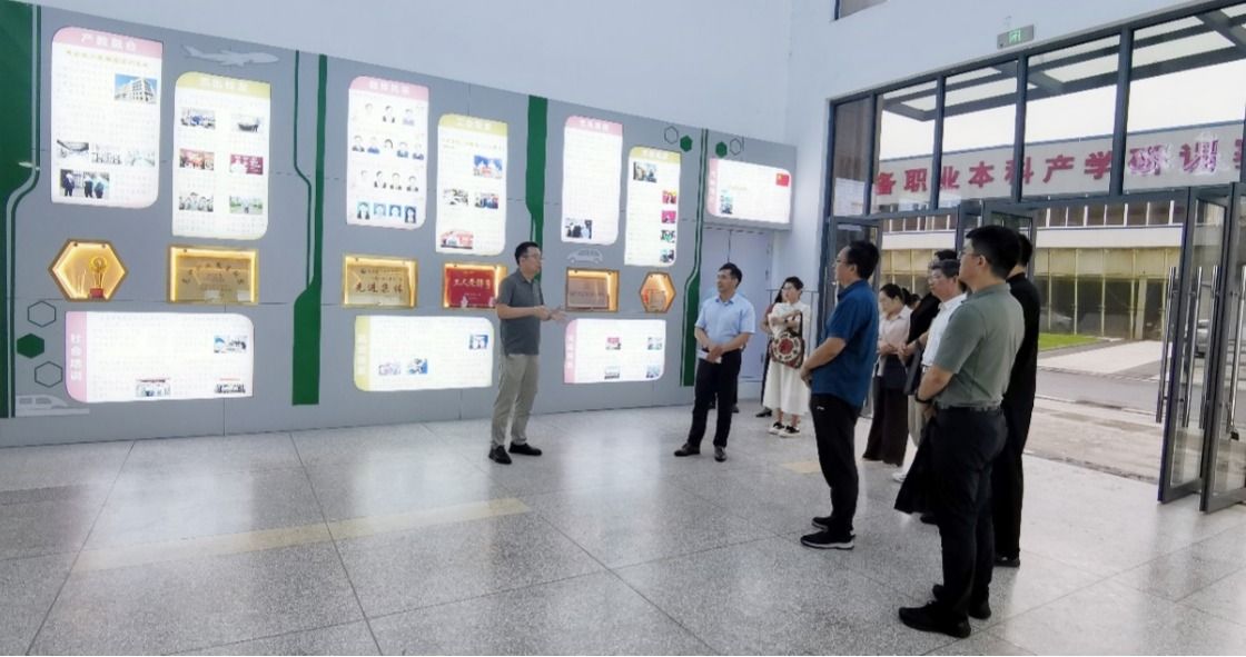 王志文一行首先参观了银湖校区汽车与航空学院、信息与人工智能学院,详细了解各相关专业校企合作、产教融合、人才培养、教学改革等情况,对我校先进的办学理念、完善的教学设施、深度的校企合作等表示高度赞赏。