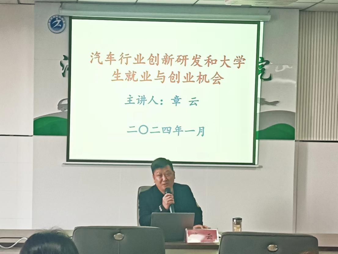 为推进学院汽车专业发展及提升教师创新创业、科学研究水平,学院邀请了安徽中日维丰新技术研究院有限公司总经理章云开展题为《汽车行业创新研发和大学生就业与创业机会》的专家讲座,章云结合自身的求学经历、创业经历以及参加创业大赛的经历,从项目选择、项目研发、项目建设等方面声情并茂的描绘了行业创新研发的艰难历程,并提出与我院教师进行项目合作的可能,丰富了教师建设横向项目的经验,拓宽教师创新研发的视野。