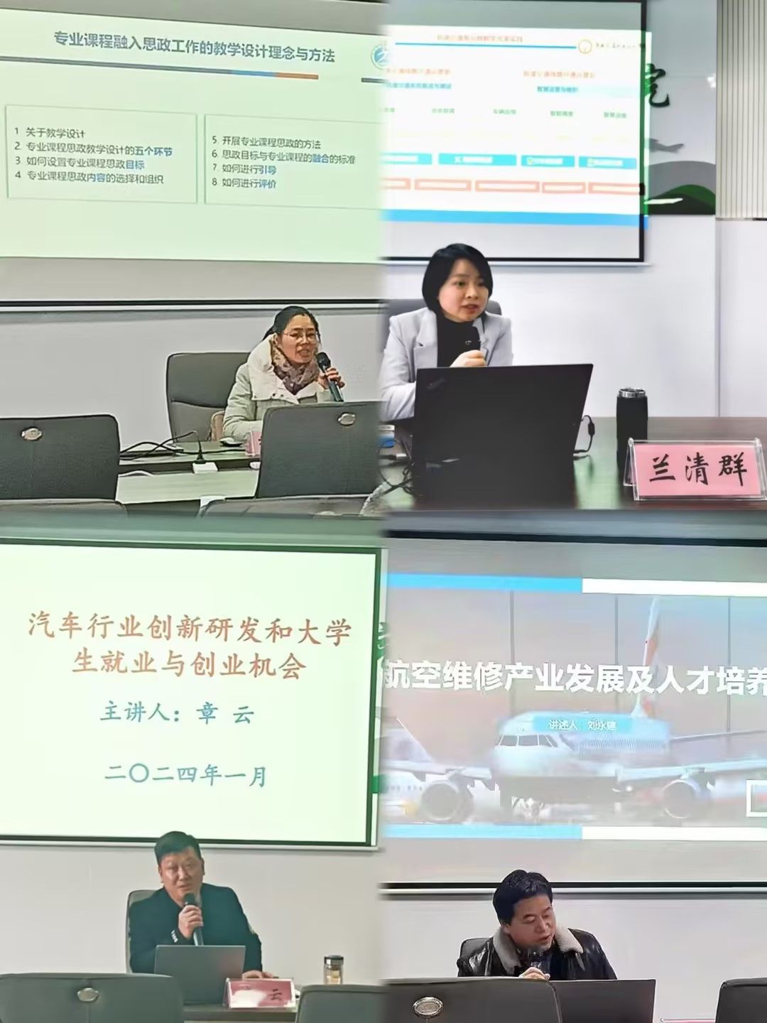 为推进学院课程思政建设,学院邀请了国家级课程思政教学名师、信息与人工智能学院省级首批“双带头人”党支部书记工作室负责人程鸿芳教授开展题为《职业教育课程思政教学改革路径》的专家讲座,为提高教师课程思政教学水平及建设优质课程思政示范课程提供了宝贵的经验。为推进学院城轨专业发展,学院邀请了全国职业院校教学能力大赛评委、安徽省五一劳动奖章获得者、安徽交通职业技术学院城市轨道交通与信息工程系主任兰清群教授开展题为《标准融入、多岗融通、专兼融合:轨道交通专业群课堂革命探索与实践》的专家讲座,对我院交通装备技术专业群的建设起到了较大的启示作用。为推进学院汽车专业发展及提升教师创新创业、科学研究水平,学院邀请了安徽中日维丰新技术研究院有限公司总经理章云开展题为《汽车行业创新研发和大学生就业与创业机会》的专家讲座,丰富了教师建设横向项目的经验,拓宽教师创新研发的视野。为推进学院航空专业发展,学院邀请了南京航空航天大学博士、华夏云天航空发动机维修有限公司副总经理刘永建开展题为《航空维修产业发展及人才培养》的专家讲座,从行业一线出发提出学校层面在学生培养方面应该关注的内容。对我院航空专业建设起到了很大的启发作用。