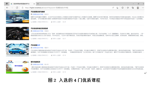 包括“一流课程”在内,全国共有311所高职院校的共计1945门课程作为“优质课程”入驻国家高等教育智慧教育平台。我校以总计4门课程位列“优质课程”全国高职院校排名第114名,安徽省第2名;青岛职业技术学院总计75门课程入选,高居榜首。我校被评为“优质课程”并入选平台的是汽车与航空学院葛胜升老师主持的《汽车涂装技术》和韩小伟老师主持的《整车性能检测》。