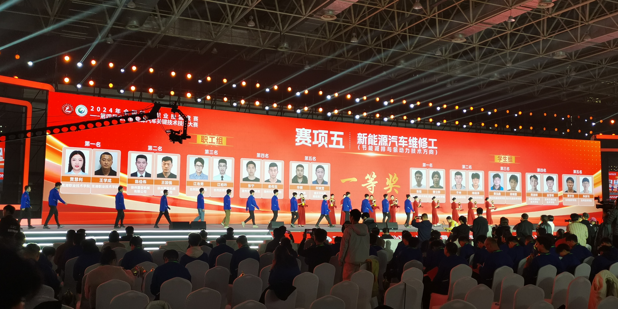 11月21日,由中国机械工业联合会、人力资源和社会保障部、全国总工会等主办的2024年全国行业职业技能竞赛——第四届全国新能源汽车关键技术技能大赛在安徽芜湖落下帷幕。我校汽车与航空学院师生4支参赛队与来自30个省(市、区)及新疆生产建设兵团代表队共1030名企业、院校选手同台竞技。贾慧利、王学成老师和张程、曹立群两名同学分获得“新能源汽车维修工(节能减排与氢动力)”赛项两个一等奖的第一名;刘长见、魏祥同学获得“汽车零部件装调工(汽车电动化技术)”赛项一等奖;徐长康、汪新伟老师获得“汽车整车装调工(新能源汽车轻量化技术)”赛项二等奖。学校被授予职工组、学生组两项全国冠军选手单位和突出贡献单位荣誉称号,获奖等次及数量居全国各参赛单位前列。