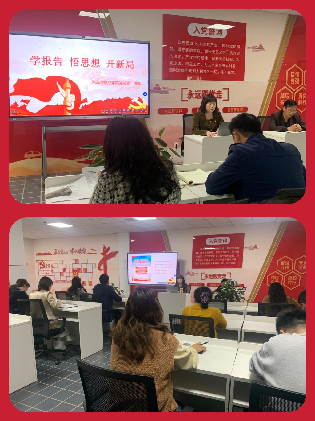 4月12日,汽车与航空学院在汽航楼党员活动室开展“书记讲党课”活动,党总支书记以“学报告 悟思想 开新局”为题,为学院全体党员、入党积极分子、思政委员代表上了一堂生动的党课。