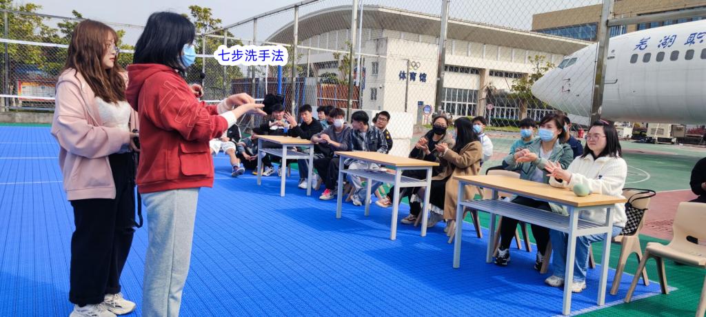 3月26日周六下午,该活动如期举行,得到了全院学生的积极响应。本次活动共有三个环节:一是“你比划我猜”,通过表演与抗疫相关词汇比如逆行者、志愿者、绿码等,以学生喜爱的娱乐方式共同学习防疫热词;二是疫情防控知识问答,通过知识问答的形式,在师生之间普及疫情防控和卫生健康知识;三是“七步洗手法”大比拼。洗手看似简单,却大有学问。通过现场洗手规范化的演练比拼,让师生认识到细节决定成败的人生哲理,养成健康的生活习惯。