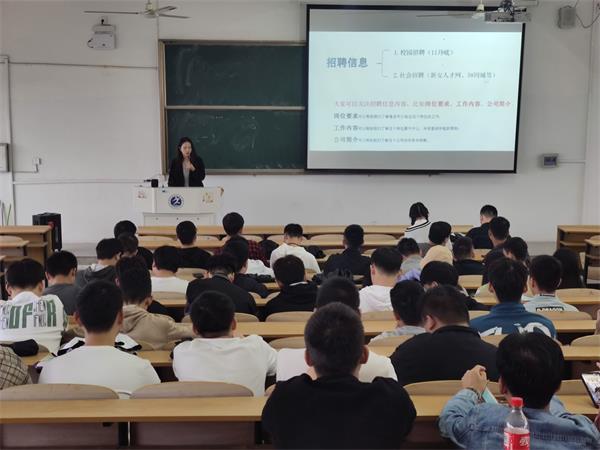 十月末,汽车与航空学院于教学楼东四阶举办了优秀毕业生就业指导专题讲座。此次讲座邀请到芜湖鹏龙伟恒奔驰4S店销售经理、我院20届优秀毕业生孟漫作为主讲嘉宾,参加讲座的有学院2019级毕业班学生共200余人。