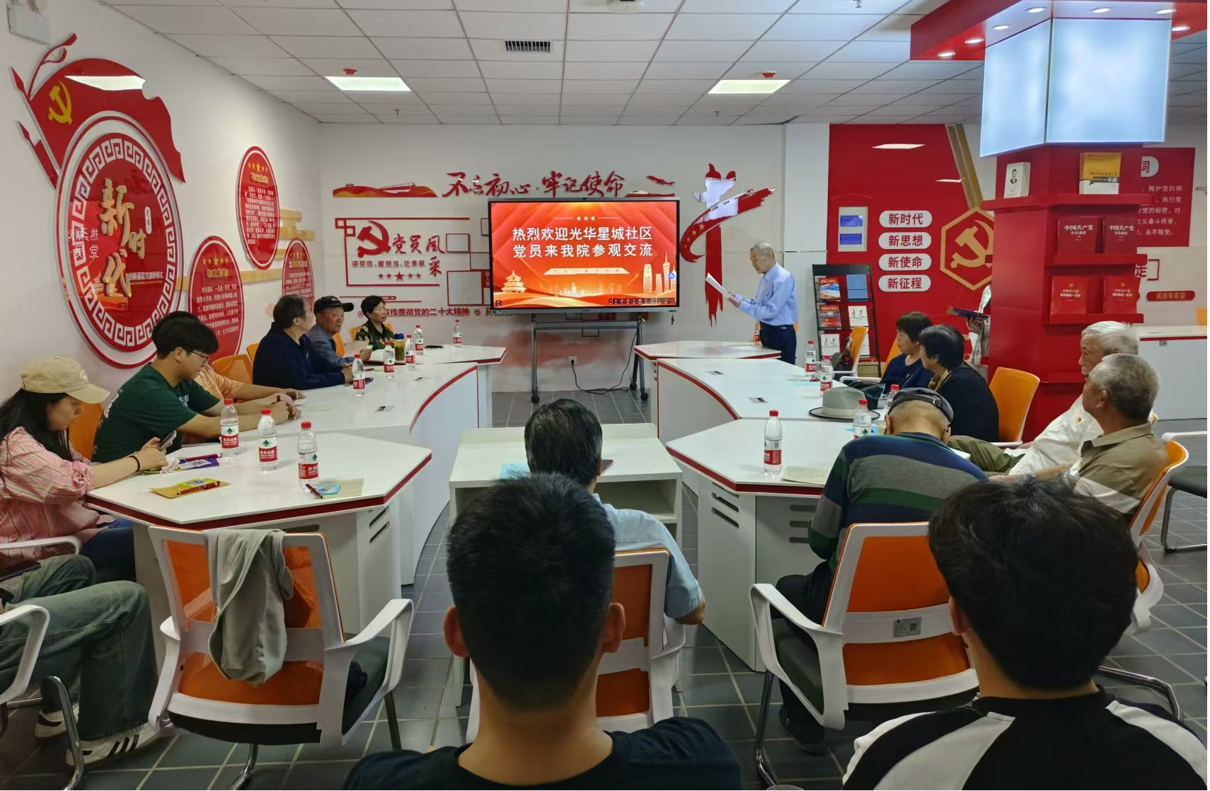 活动伊始,主持人对社区党员的到来表示热烈的欢迎。活动上,双方党建负责人分别介绍了党建工作的基本情况,达成了以党建引领社区治理新活力,协同育人的美好愿望。随后,双方党员代表分享了自己入党的初心故事,共同抒发了对伟大的中国共产党和祖国的热爱之情,在场的同学们深受鼓舞,纷纷表明一定会坚守自己的使命,以党的旗帜为旗帜、以党的意志为意志、以党的使命为使命,展现积极担当作为的精神,共同创造美好家园。最后,在学院团委书记卓小文的带领下,学院志愿者带领社区党员参观了学院的各个实训基地,并参与了校团委举办的青年团课,感受学校青年的青春的活力。