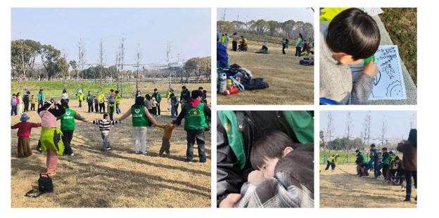 活动现场,青年志愿者们与特殊学生们一起种树、玩游戏,做手工,陪着小朋友们为春天填涂颜色,绘画出他们心中的春日画卷,在大自然中感受春天的气息。